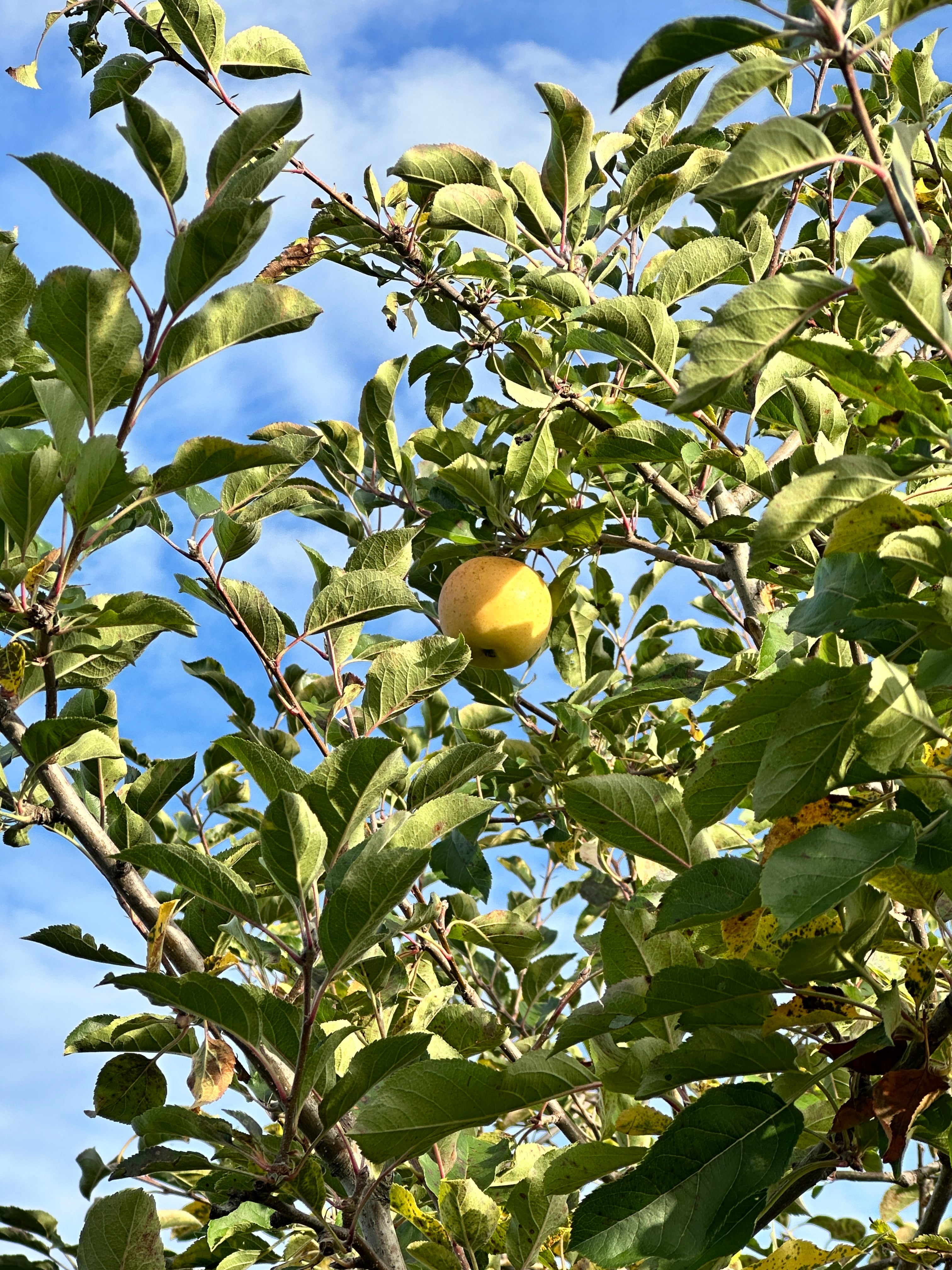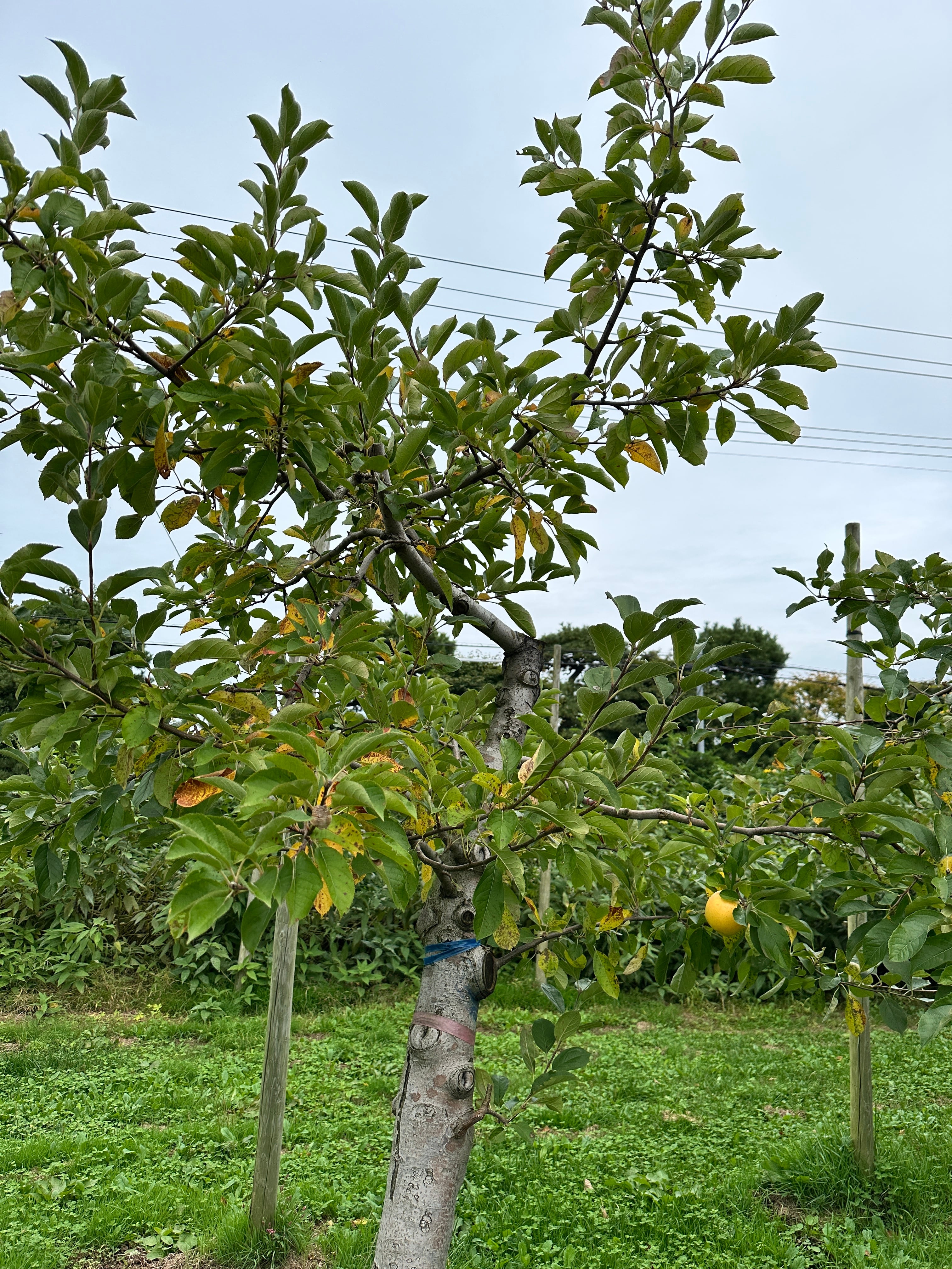 りんご収穫後、樹に1個や2個だけ採り忘れたりんごが残ってる場合があります。