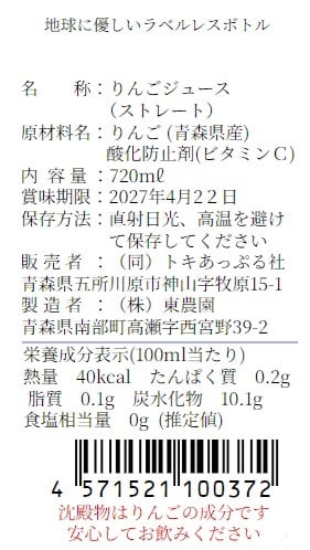 青実りんごを使用した果汁なので、甘さ控えめで酸味豊かなリンゴジュースです。