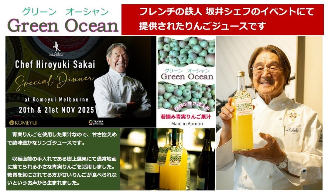 2025年11月オーストラリアのメルボルンで開催されたフレンチの鉄人 坂井シェフのイベントにて提供されたりんごジュースです。
